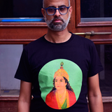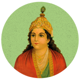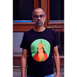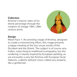 Moon Face 1: An arresting visage of Krishna, designed to create a mesmerising effect, this image presents a happy meeting of the two visual worlds of the Occident and the Orient. The subject is of course very Indian, subscribing to traditional iconography; but the rendering is heavily inspired by European painting, as we encounter a very fair Krishna with European facial features, a dainty stylised crown, robed very properly like a gentleman.