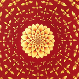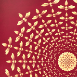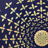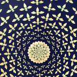 Scent of a Lotus is an immaculate mandala of a central lotus encircled by bees, painted with meticulous attention to composition, so as to make this print an image of boundless meditative energy. The colour palette, draws from natural pigments (indigo and madder) used extensively by the artist, notably in the classic Dawn diptych.
