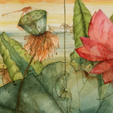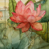 Indra’s white elephant walks into the artist’s oft-explored Lotus landscapes,