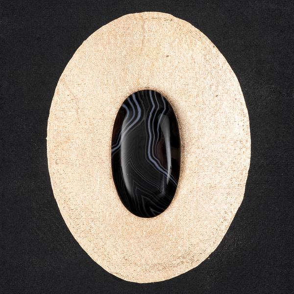 Metallic foil (gold tone) and agate stone on handmade paper