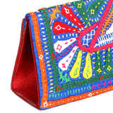 Rabaris are one of the most interesting ethnic communities in Kutch (originally nomadic but today, mostly settled). Embroidery is a vital, living and evolving expression of the aesthetic traditions of the community. Initially, embroidery was executed only for personal use (connected with the women’s dowries); but was gradually banned for personal use by the community elders, and only allowed professionally. Responding to the new challenges, women invented the use of trims and ribbons, applied by machine; an art that came to be known as Hari Jari. Pabiben mastered this art with enthusiasm, and since 1998, started churning out bags that became instantly popular in the contemporary market.