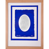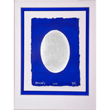 Metallic Foil (Silver tone) and Ultramarine Blue Pigment on Handmade Paper