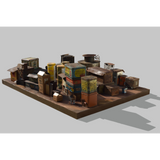 Installation with old metal boxes, treated with enamel paint and lacquer