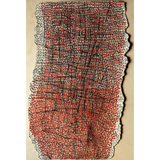 The works are meditative and the act of repetition is an intrinsic part of the process:  tiny seeds are drawn multiple times, like a ‘japa’ of ‘mantra’ they appear again and again, lines are entwined, inter-connecting, stretching far and wide, meeting, crossing, they are mapping memories, without borders or boundaries. Or perhaps it is a fabric, a garb covering the body, the body of this earth, with its warp and weft, stretching and weaving threads, threads that inter-connect and bind, appearing at times like a mesh around – protecting this delicate balance. In this web of life there is energy and there is a flow- suggesting that we are part of nature and not separate from it.”