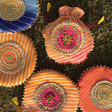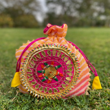 Beautiful printed Leheriya tie-dye Potlis from the Jaipur bazaar, holding within them four luxurious colours: natural, artisanal blends for Holi; made in Jaipur, using local ingredients, scented with traditional attars.