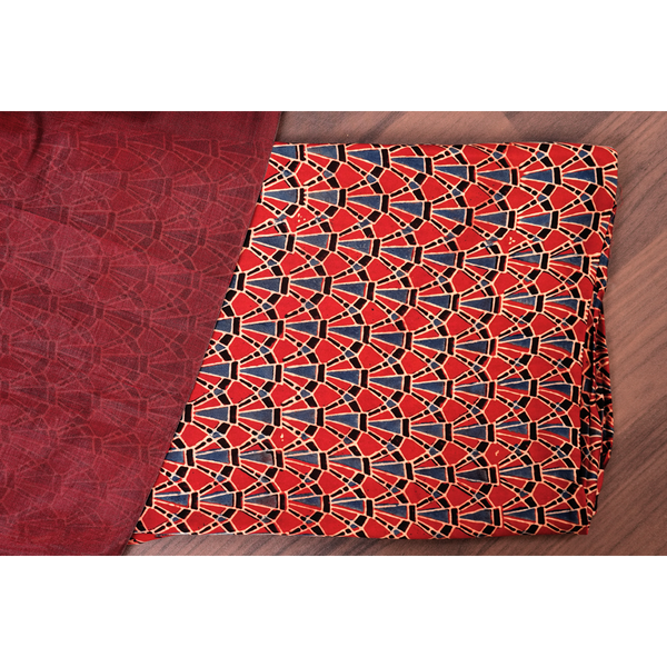 Contrasting blouse piece: Art Deco Ajrakh Modal Fabric (1m)