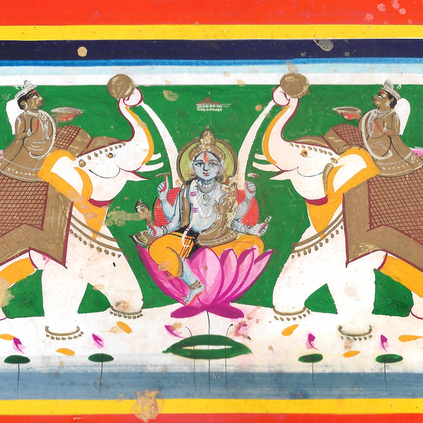 Presenting a signature selection of vintage 20th c. Gaja-Lakshmi paintings from Jaipur from our extensive collection of these Bazaar paintings.